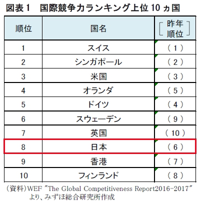 F1 the global competitive report 2016-2017 よりみずほ総合研究所作成
